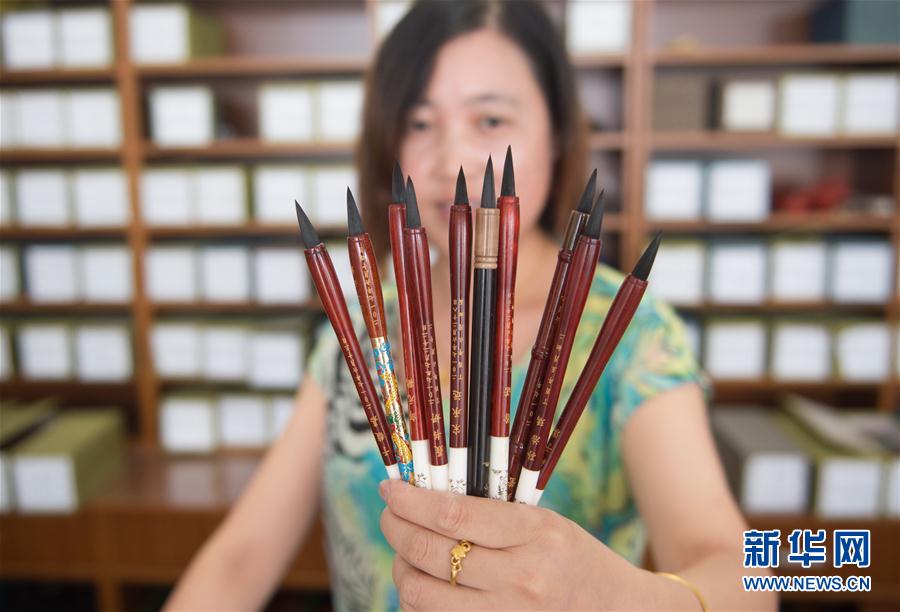 8月8日,湖州市善琏镇永鑫笔庄的工作人员展示一批刻有婴幼儿姓名和生日的胎发毛笔。全国各地不少父母将初生婴孩第一次剪下来的头发,寄到“文房四宝”之首湖笔的发源地浙江省湖州市善琏镇,湖笔制作企业以传统湖笔制作工艺制成胎发毛笔、胎毛章等,为初生子女留作纪念。目前,定制胎发毛笔成为传统湖笔产业的一种新兴衍生品。