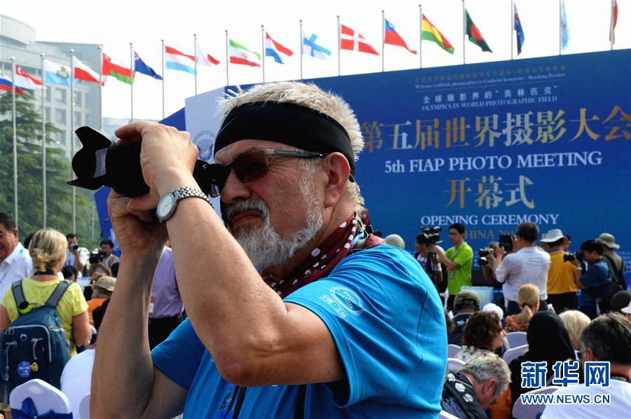 8月8日,来自欧洲的摄影师米兰·沃力克在山东济南举行的第五届世界摄影大会开幕式上拍照。当日,为期一周的第五届世界摄影大会在山东济南拉开帷幕,来自世界各地的300多位摄影师和上千名中外嘉宾参加开幕式,这是世界摄影大会首次落地中国。