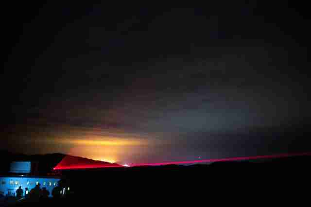 2016年12月22日 丽江量子通信地面站望远镜发射红色信标光,“等待”“墨子号”过境。新华社记者 金立旺 摄