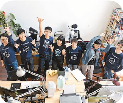 陕西大学生科技创业公司“第六镜”运营团队的成员在工作室合影。新华社发