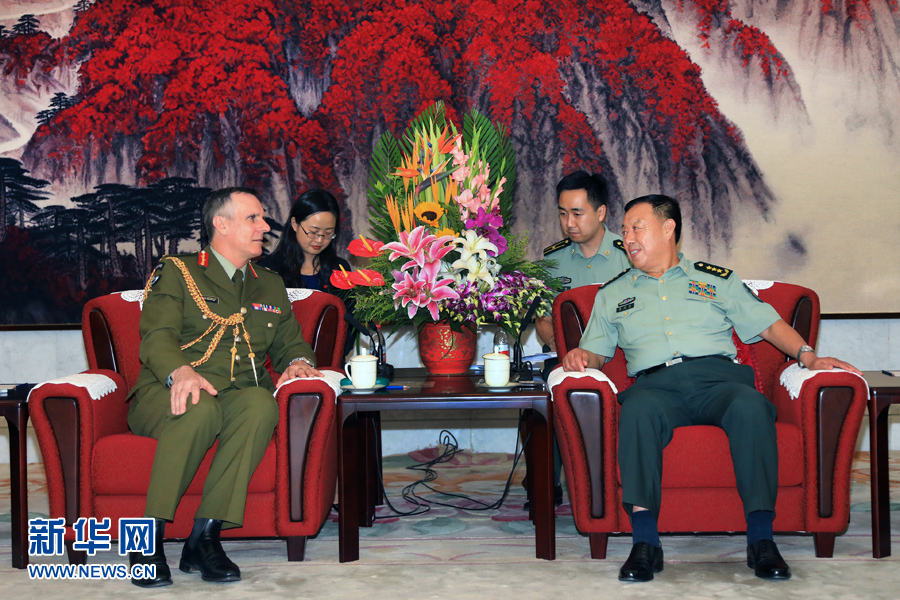 8月14日,中央军委副主席范长龙在北京会见新西兰国防军司令蒂莫西·基廷。 新华社记者 刘芳 摄