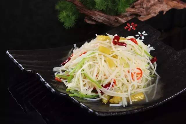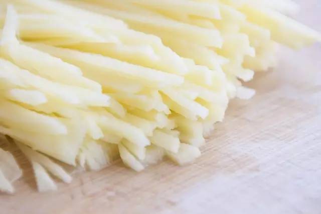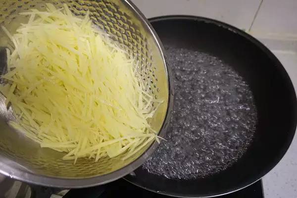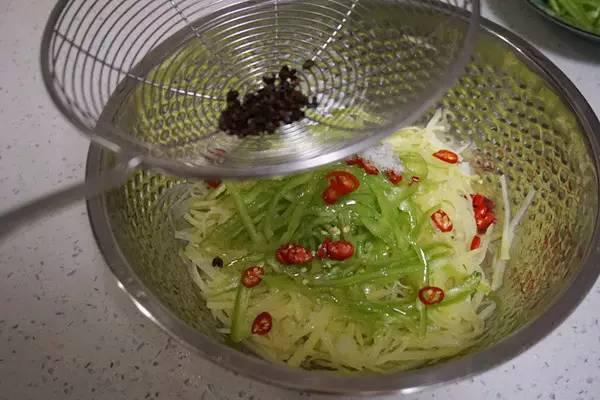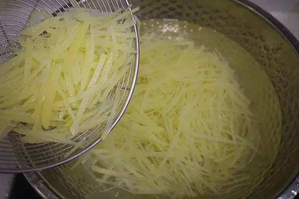 这样一热一冷,不仅土豆丝熟了,且会变得很脆。