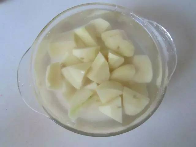 1. 土豆切成滚刀块, 放入加入些白醋的水中泡上一会儿;