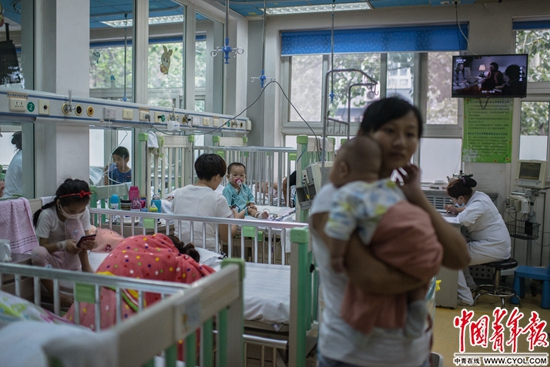 北京儿童医院呼吸二科病房设有34个床位,平日会加床到41张,依然难以满足来自全国各地的患儿需求。中国青年报·中青在线记者 王婷舒/摄