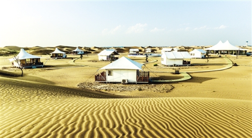 ▲宁夏中卫市沙坡头景区的沙漠小镇。本报记者 许 凌摄