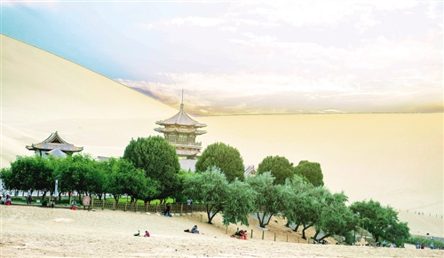 甘肃敦煌市鸣沙山月牙泉景区风光壮美。