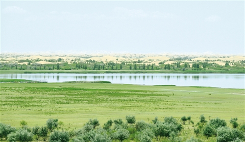 内蒙古鄂尔多斯杭锦旗库布其沙漠七星湖美景。