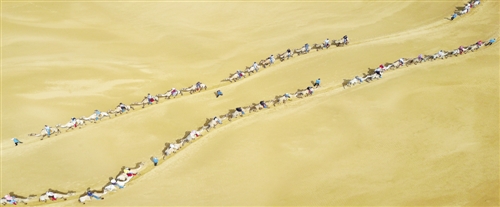 沙漠游玩看新奇。响沙,又叫鸣沙,是一种奇特的自然现象。在甘肃敦煌鸣沙山,驼队绵延数公里,滑沙游客接踵比肩。当地人说,鸣沙山有两个奇特之处:人若从山顶下滑,脚下的沙子会呜呜作响;白天人们爬沙山留下的脚印,第二天竟会痕迹全无。而内蒙古响沙湾,是一片被草原包围的沙漠。这里的沙山高110米,坡度45度,形成一个巨大的沙山回音壁。当人们从沙顶向下滑动,便会听到巨大轰鸣声。