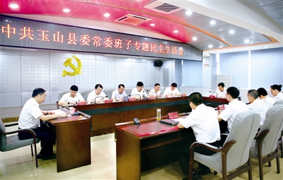 近日,江西省玉山县委常委班子召开专题民主生活会,就该县经济开发区管委会原主任徐裕龙违纪案件进行剖析,并开展批评与自我批评。汪金文 摄