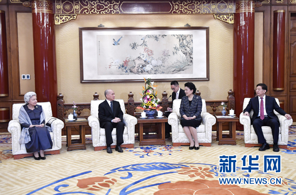 8月23日,国务院副总理刘延东在北京会见来华例行查体休养的柬埔寨国王西哈莫尼和太后莫尼列。新华社记者 燕雁 摄