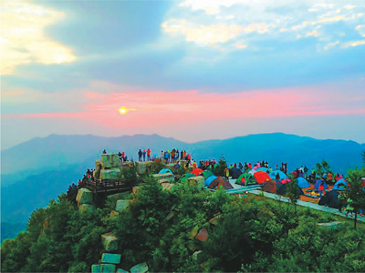 日前,在三峡大老岭国家森林公园,许多游客来到海拔近2000米的云顶观看日出美景。大老岭国家森林公园地处长江西陵峡北岸,是三峡地区首个国家级森林公园,主峰天柱峰海拔2008米,自古就有“三峡云顶”的美称。由于受大面积森林和高海拔的影响,三峡大老岭年均温7.84摄氏度,最热月均温18.56摄氏度,是绝佳的避暑地。