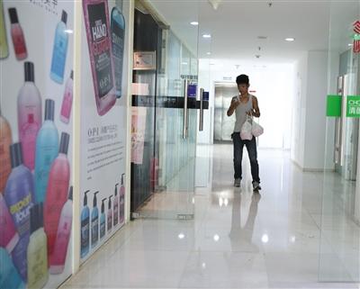 8月24日中午,建外SOHO东区办公楼,一名外卖小哥在楼层内送餐。新京报记者 侯少卿 摄