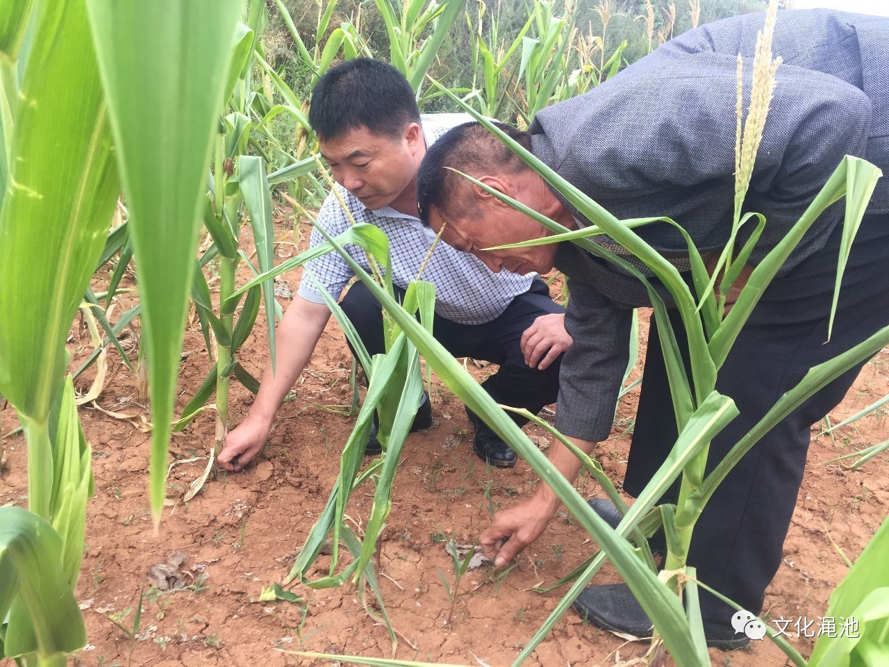 侯建星冒雨到田间地头了解所包贫困户杨神锁家柴胡出苗情况