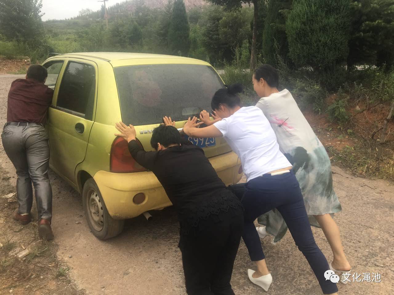 入户途中遇到老乡的车坏路上,帮助其推至安全路段。