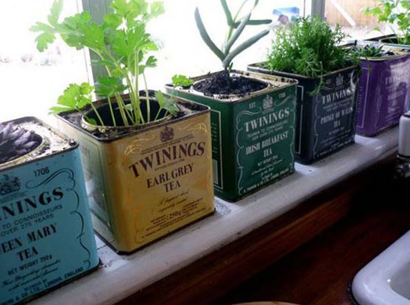 这种锡铁茶叶盒自带一种复古的老旧感,既是花盆,又是漂亮的装饰,放于室内一隅,让人看到心情都明亮开朗起来。