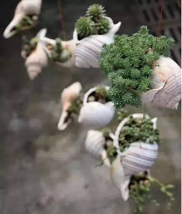 如果你住在海边,那么赶紧去沙滩上捡些贝壳海螺回家吧,用它们种花真的太美了。
