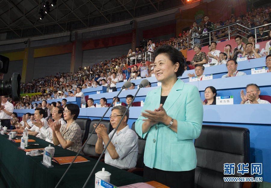 9月3日,第十三届全国学生运动会在杭州黄龙体育馆拉开帷幕。中共中央政治局委员、国务院副总理刘延东宣布第十三届全国学生运动会开幕。新华社记者翁忻旸摄