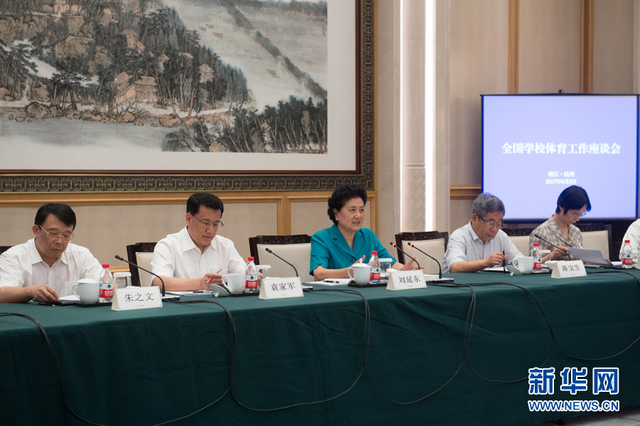 9月3日,中共中央政治局委员、国务院副总理刘延东在杭州出席全国学校体育工作座谈会。 新华社记者 翁忻旸 摄