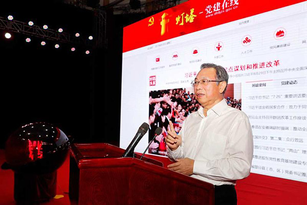 在共同触按启动球,开通“灯塔-党建在线”综合管理服务平台后,刘家义指出,这一平台是贯彻落实习近平总书记关于互联网信息化工作重要指示要求,适应把握现代信息技术条件下党的建设特点规律,运用互联网思维和技术推动全省党的建设和组织工作的重要举措。要把平台建成广大党员干部群众学习党章党规、学习习近平总书记系列重要讲话精神和治国理政新理念新思想新战略的园地,教育引导党员干部牢固树立“四个意识”,坚决维护习近平总书记核心地位、领袖权威,坚决维护以习近平同志为核心的党中央权威和集中统一领导,始终同以习近平同志为核心的党中央保持高度一致。要把平台建成强有力的宣传阵地,宣传好党的十八大以来在以习近平同志为核心的党中央坚强领导下,党和国家各项事业取得的辉煌成就、历史变革和人民群众的幸福感获得感,宣传好我省各行各业坚决贯彻落实党中央各项决策部署的经验做法和涌现出的先进典型,宣传好中华优秀传统文化和沂蒙精神,为统筹推进“五位一体”总体布局和协调推进“四个全面”战略布局、加快经济文化强省建设不断注入正能量。要把平台建成联系广大党员干部群众的纽带,使全省各级党组织和广大党员紧紧凝聚在党中央周围,战斗在党和人民需要的地方,做出党和人民期望的业绩。要建成联系群众、服务群众的平台,充分反映群众诉求,履行好党组织职责,发挥好党员作用,做人民最需要的事情。