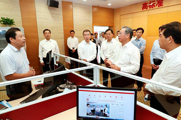 刘家义首先来到山东省远程教育中心,听取了“灯塔-党建在线”综合管理服务平台建设情况汇报,仔细察看山东e支部、党务村务财务公开等功能系统应用情况,详细询问平台数据量有多大,更新速度有多快,舆情监测平台如何运作、是否有效。