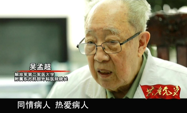 〖时代先锋〗践行“两学一做”——为您介绍我国肝胆外科创始人、中国科学院院士吴孟超的事迹。一个人在95岁的时候还能做些什么?画面中的这位老人今年已经95岁高龄了,每周仍亲自主刀多台高难度的手术,坐堂专家门诊,教带研究生。是什么力量,使他在逾鲐背之年依然保持如此饱满的精力和热情?让我们一起走近我国肝胆外科创始人、中国科学院院士吴孟超。