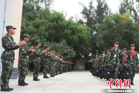 新训干部骨干列队欢迎新战友。 袁浩翔 摄