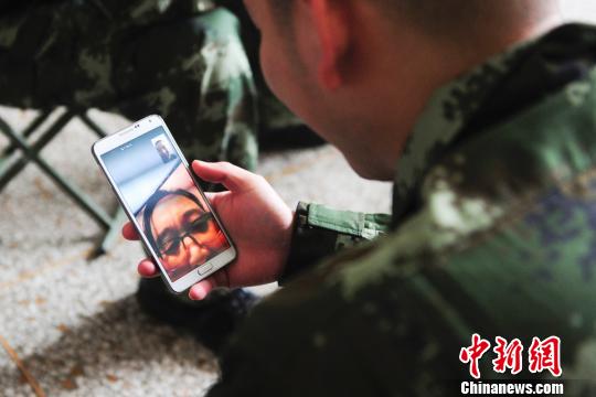 新兵与家人开视频、报平安。 袁浩翔 摄