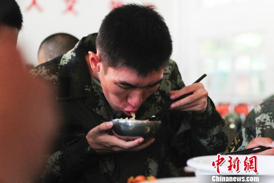 入营新兵吃一碗“迎新面”。 袁浩翔 摄