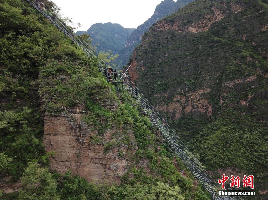 120吨钢材、共6000根钢管修筑了2556级“钢管天梯”。张浪 摄