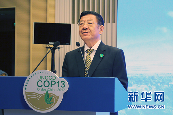 中国国家林业局局长张建龙出席会议并致辞。 新华网 郭香玉 摄