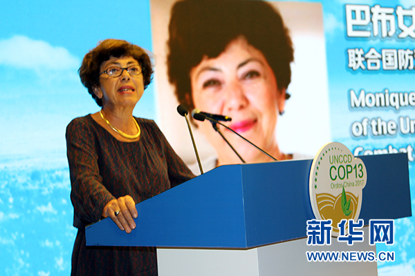 联合国防治荒漠化公约(UNCCD)组织秘书处执行秘书莫妮卡•巴布出席会议并致辞。新华网 郭香玉 摄