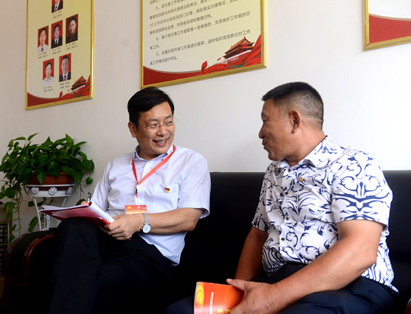 图为湖北省咸宁市委书记、人大常委会主任丁小强在南林桥镇党代表工作室接待党员群众。