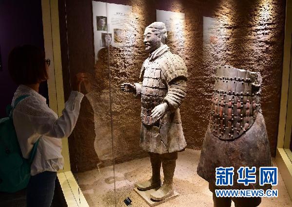 西安秦始皇帝陵博物院举办的“真彩秦俑”展览现场(2014年11月21日摄)。新华社发(张天柱 摄)
