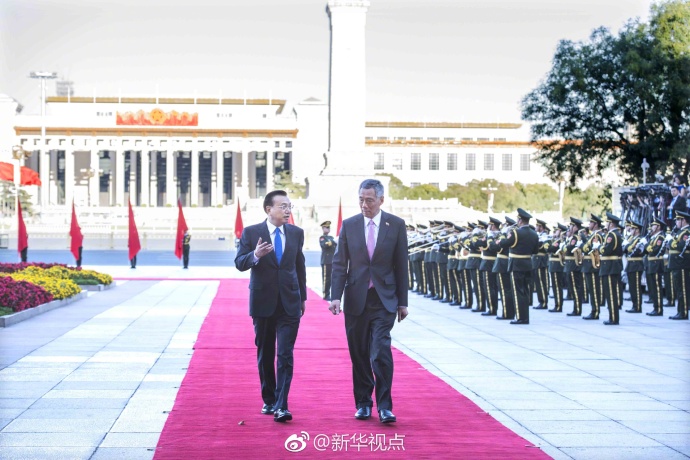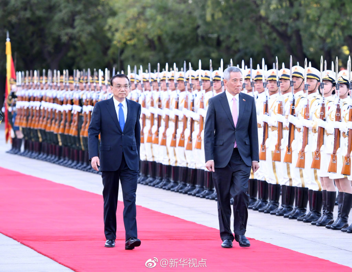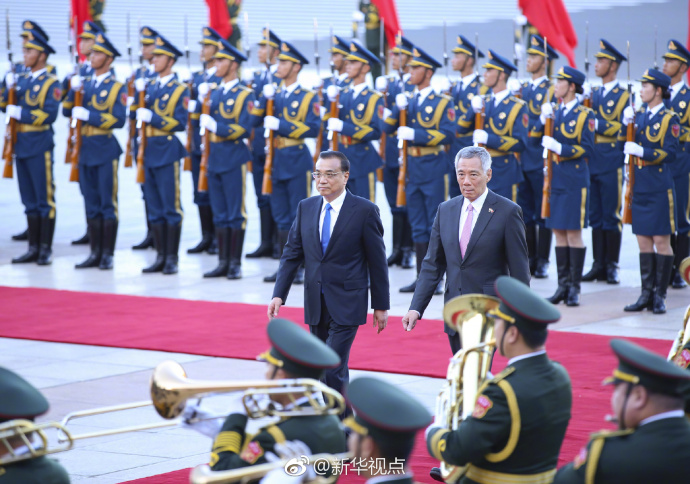新华网北京9月19日电 国务院总理李克强9月19日下午在人民大会堂东门外广场举行仪式,欢迎新加坡总理李显龙来华进行正式访问。 (据新华视点微博)