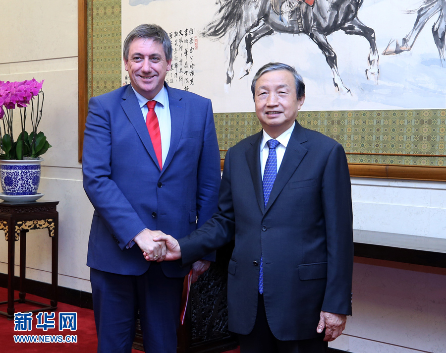 9月26日,国务院副总理马凯在北京钓鱼台国宾馆会见比利时副首相兼内政大臣让·让邦一行。 新华社记者 姚大伟 摄