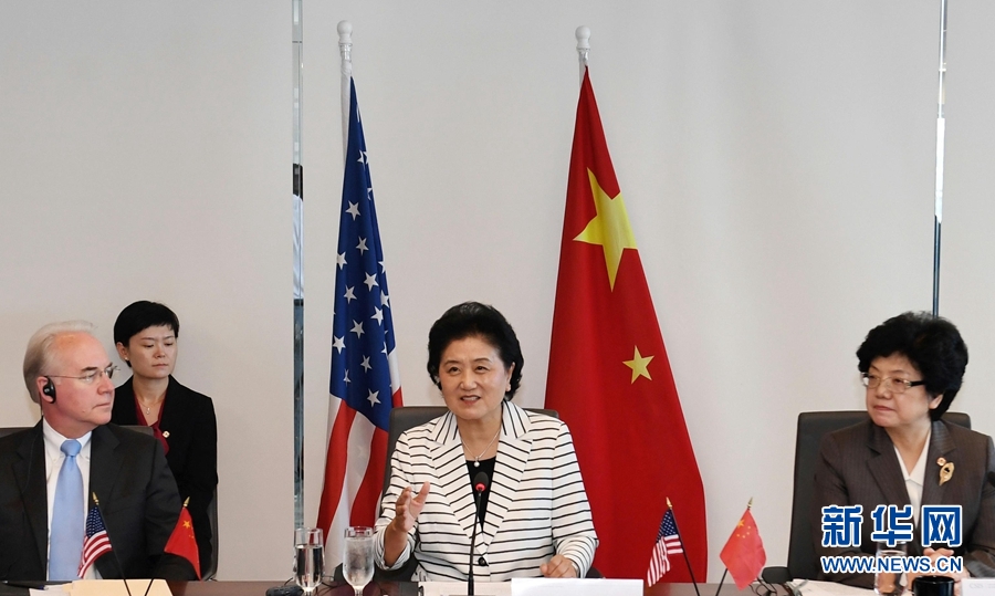 当地时间9月27日,国务院副总理刘延东(中)在美国华盛顿战略与国际问题研究中心出席中美卫生合作研讨会。新华社记者殷博古摄