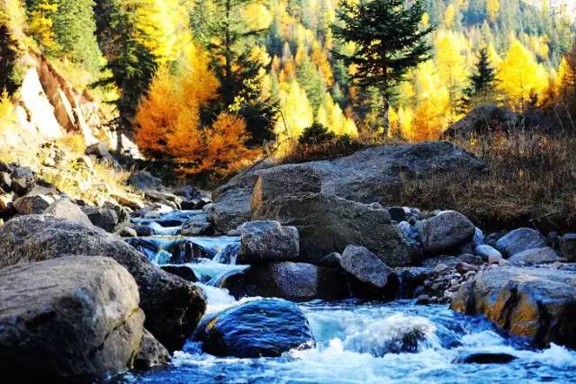 每到国庆前后,这里湛蓝如洗的碧空,涓涓不息的流水,五颜六色的山峦,金色覆盖的田野,处处都散发着自然美丽的气息。