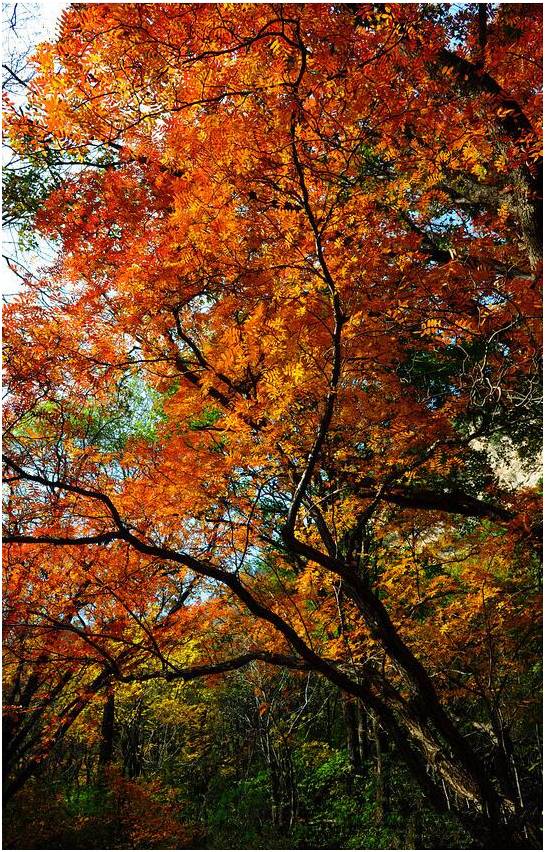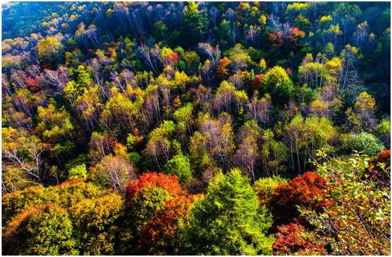 每当秋季,这里便呈现出一派色彩纷呈的彩色世界,层林尽染,五彩斑斓,其壮美神韵,无与伦比。
