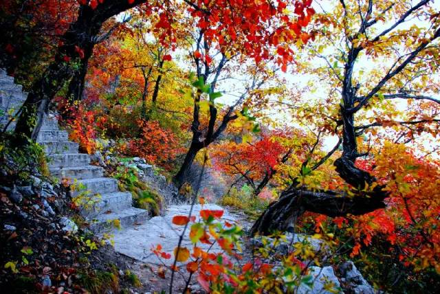 进入山口便走进了风光秀丽的红叶谷,这里四季如画,尤其是到了金秋时节,整条山谷一片火红,走进红叶谷,仿佛置身仙境。