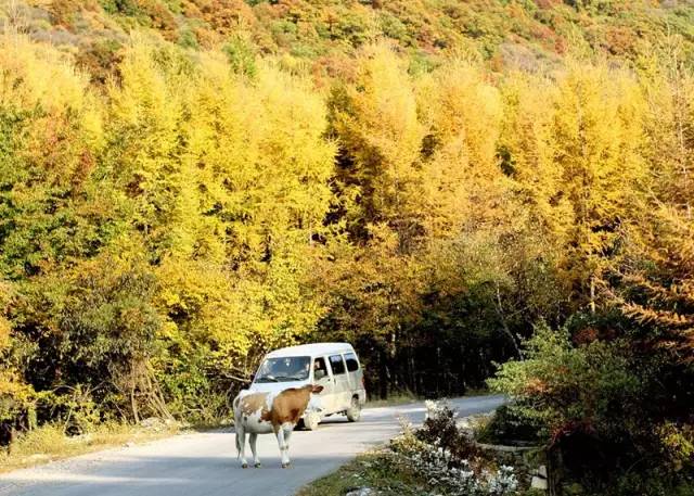 偶尔,你也会在路边邂逅一只淘气的牛,充满了秋天的野趣。