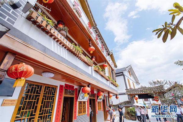 游客在贵州遵义枫香镇花茂村“红色之家”农家乐参观(9月9日摄)。 新华社记者 朱炜 摄