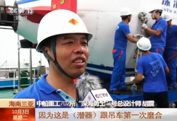 中船重工702所“深海勇士”号载人潜水器总设计师 胡震:因为这是跟吊车第一次磨合,第一次去挂钩,有点小问题。