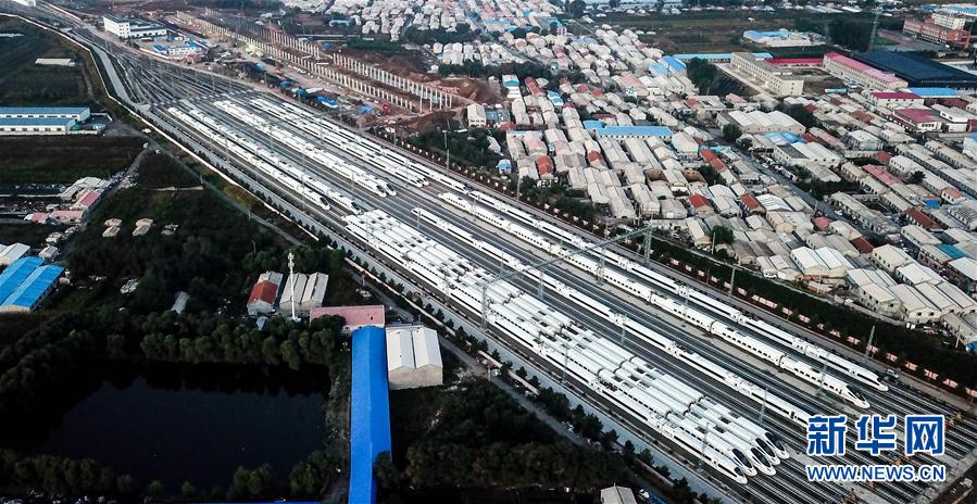 这是沈阳铁路局长春动车运用所等待发车的高铁列车(9月18日摄)。新华社记者 张楠 摄