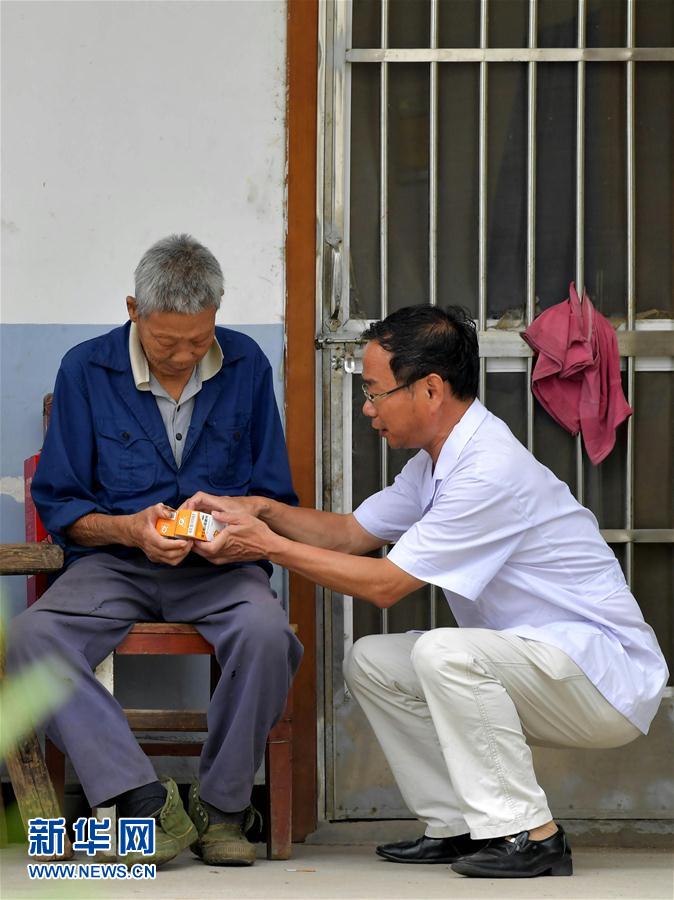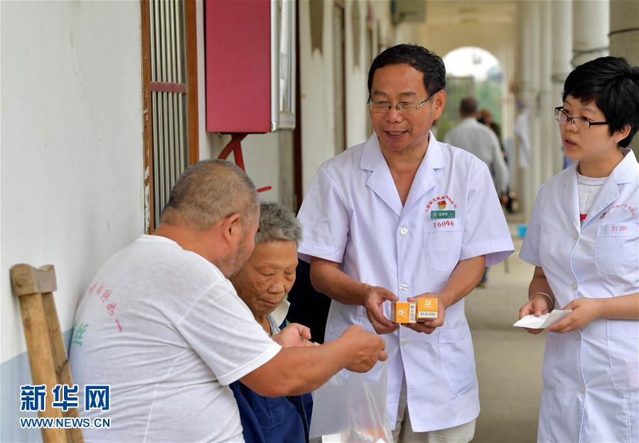 28载无怨无悔在江西省皮肤病专科医院康复中心,徐根保(右二)向患者介绍服用药物的具体步骤(9月29日摄)。新华社记者 彭昭之 摄