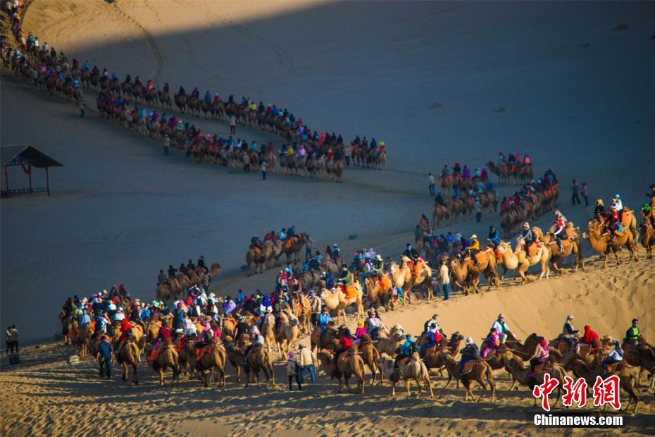 今年“十一”黄金周期间,丝绸之路国际旅游名城甘肃敦煌天气晴好,景色如画。敦煌深厚的历史文化和雄浑的大漠风光,吸引了大批海内外游客纷至沓来,敦煌旅游再度火爆。10月3日,鸣沙山月牙泉景区接待游客29524人次,创景区单日接待游客人数最高纪录。