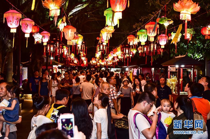 游客在深圳锦绣中华·民俗村猜灯谜(10月4日摄)。新华社记者 王晓丹 摄