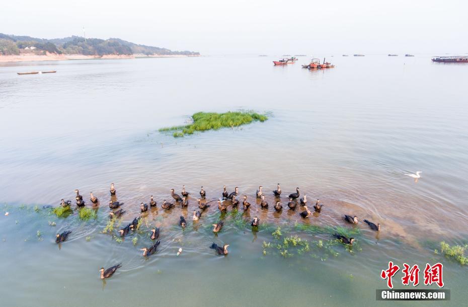 据水文部门信息,10月5日9时25分起,鄱阳湖出现今年首次长江江水倒灌进入鄱阳湖。长江江水倒灌对于鄱阳湖枯水期提前出现起到重要抑制作用,有利于鄱阳湖水生态平衡和水环境维护,有利于渔业资源恢复和越冬动、植物保护。 傅建斌 摄