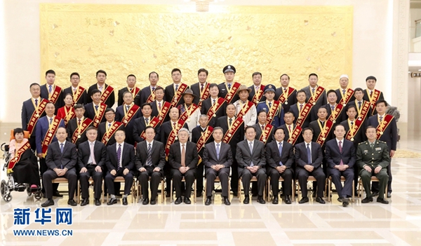 10月9日,脱贫攻坚先进事迹报告会在北京举行。中共中央政治局委员、国务院扶贫开发领导小组组长汪洋出席报告会并讲话。这是报告会前,汪洋与全国脱贫攻坚奖获奖者合影。新华社记者 丁林 摄