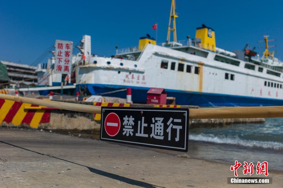 10月14日,海口港客运站码头上停航前最后一班客滚船正在加紧卸船。受今年第20号台风“卡努”影响,14日夜间起,琼州海峡风力增大,为保障航行安全,海南海事部门决定从14日10时起,琼州海峡全线停航,同时粤海铁路跨海旅客列车全部停运。海南省气象局也在13日14时50分变更台风四级预警为台风三级预警,提醒相关部门做好防范。中新社记者 骆云飞 摄