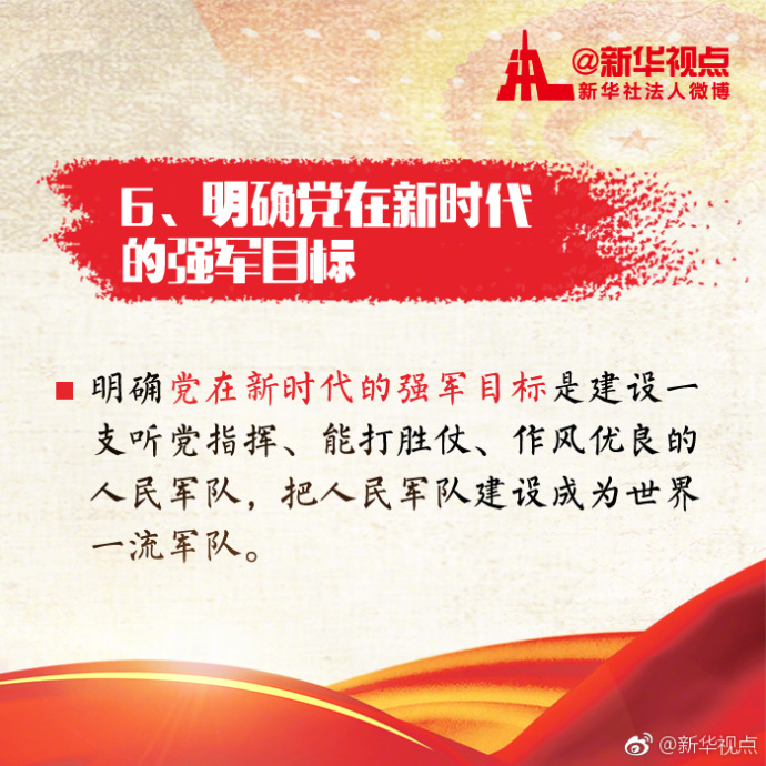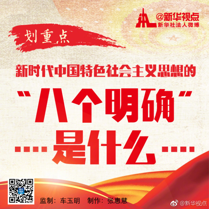 新华网北京10月20日电 新时代中国特色社会主义思想,有“八个明确”!快收藏。(据新华社“新华视点”微博报道)